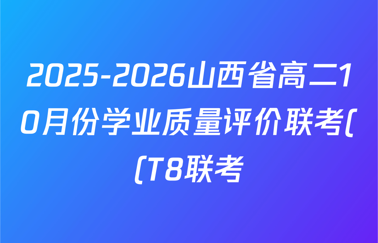 2025-10-10 11:43:33山西省2025-2026高二10月份学业质量评价联考(T8联考)试卷及答案汇总(含数学 生物 英语等)语文答案已经更新完毕了, 陈老师汇总如下,供同学们参考学。 -