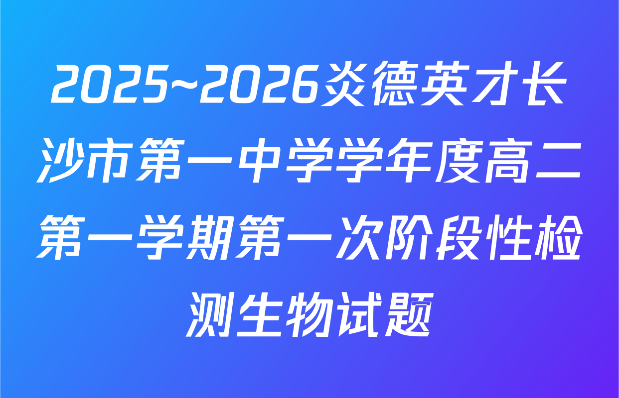 • 2025~2026炎德英才长沙市第一中学学年度高二第一学期第一次阶段性检测生物试题