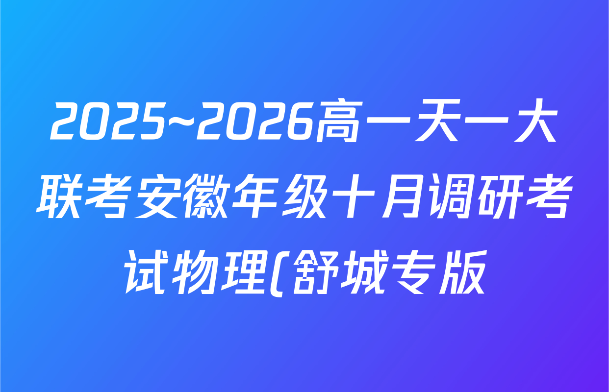 2025-10-23 08:35:31天一大联考安徽2025-2026高一年级十月调研考试(含化学(安庆专版)、英语(译林版)、数学等17份)物理(舒城专版)的试题科目已经在陆续整理了,届时 武老师将为大家... -