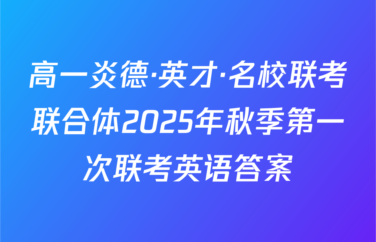 2025-10-20 13:07:51炎德英才名校联考联合体2025年秋季高一第一次联考试卷及答案汇总(含物理、数学、语文等)地理的答案科目已经在陆续整理了,届时 陈老师将为大家公布,希望对同学... -