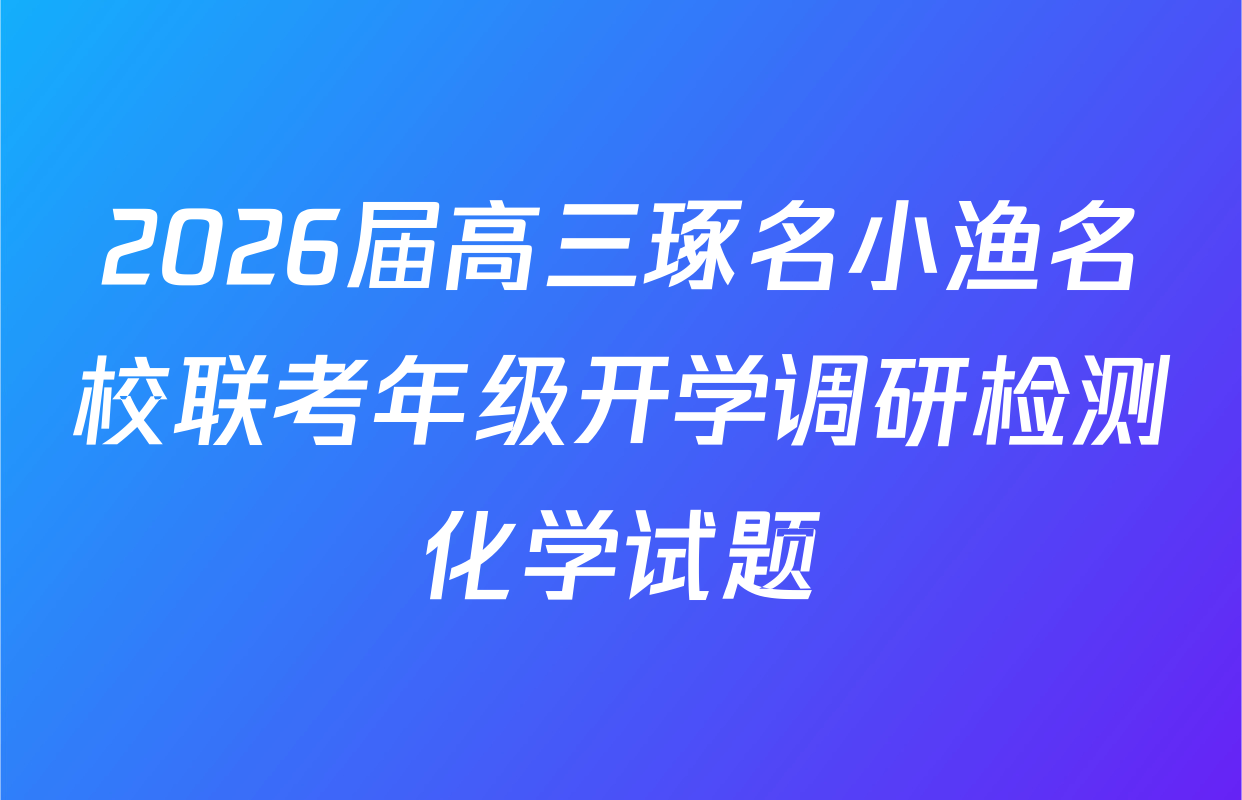 2026届高三琢名小渔名校联考年级开学调研检测化学试题